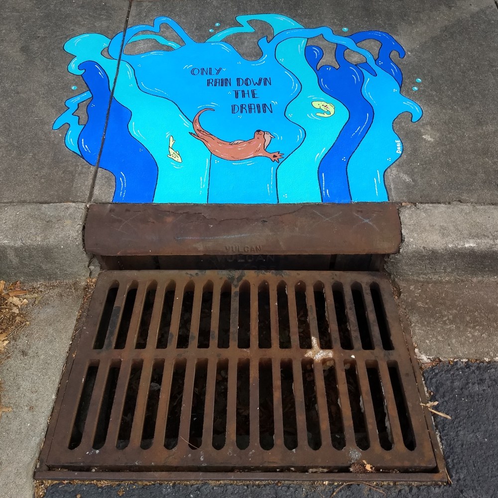 This was an incredible opportunity to add to the growing public art in Columbia, and the perfect way to combine two loves: art and environmentalism (aka my love for furry creatures that swim in our rivers!). The hopeful outcome is to create something beautiful and fun that inspires the public to think about the role storm drains play in their community. What goes down them enters our rivers and waterways impacting the flora and fauna that live in them, and eventually us.
