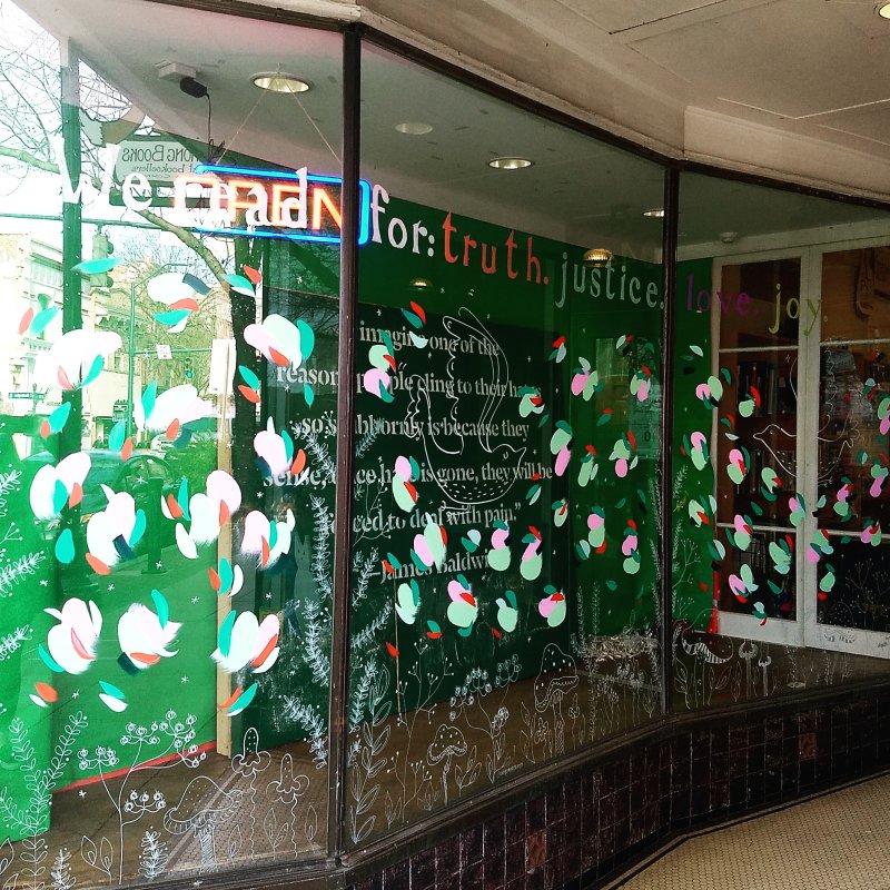 Holiday Window for Scuppernong Books. Greensboro, NC. 2020.