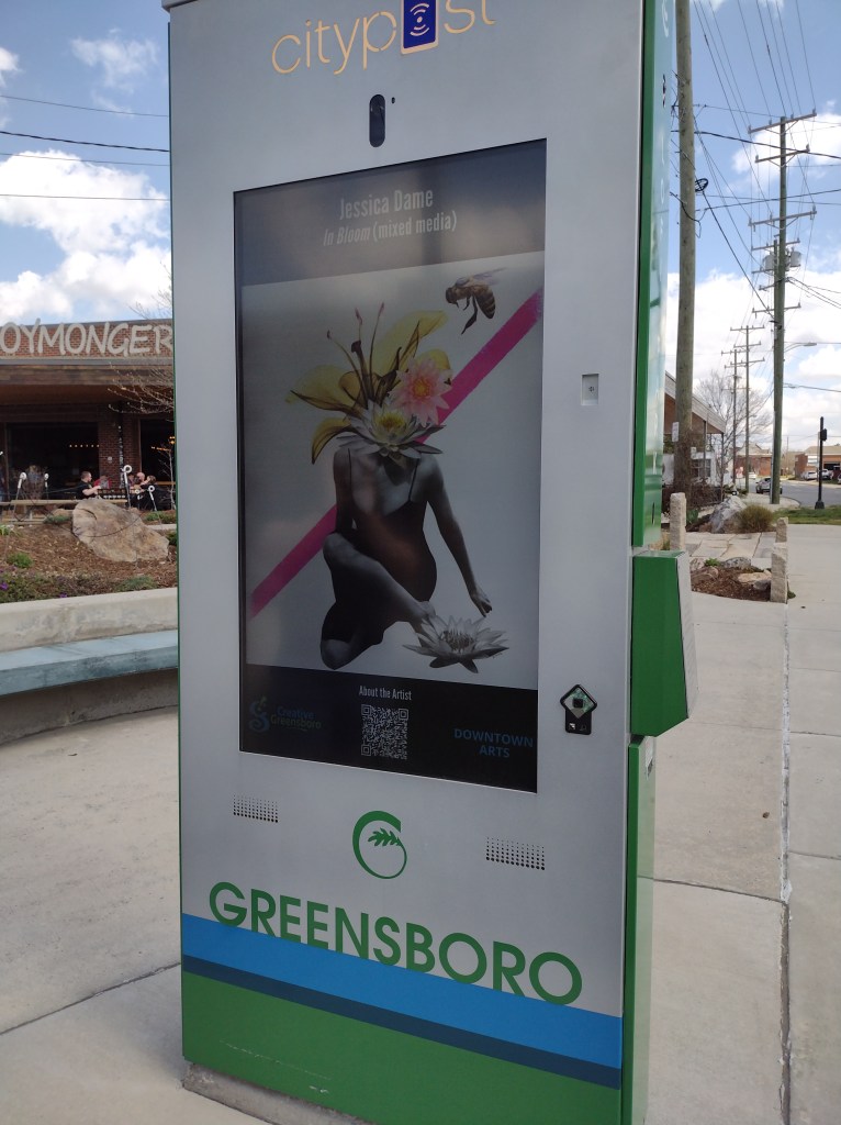 In Bloom featured on Downtown Greensboro Kiosks. 2022.